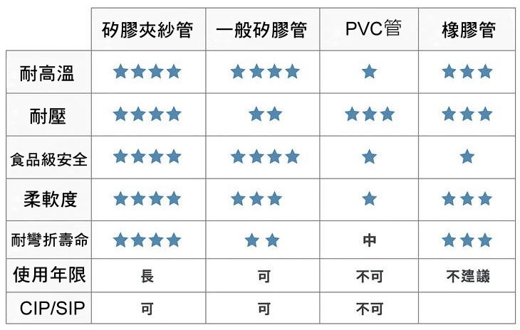 四、矽膠夾紗管與其他管材比較